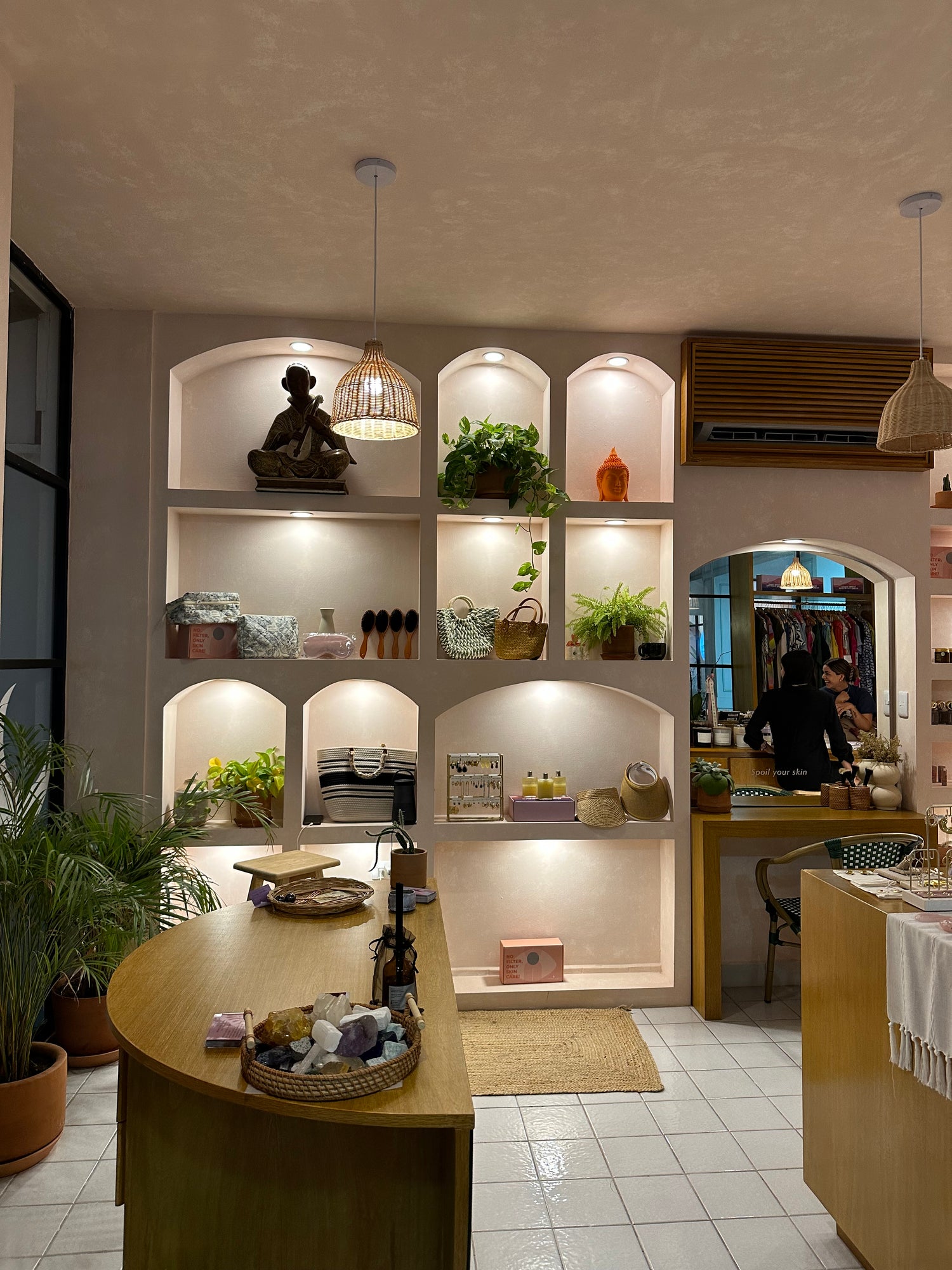 Ven a visitarla a la tienda, donde te permitirá probar el amor de Madre Luna Skin Care.